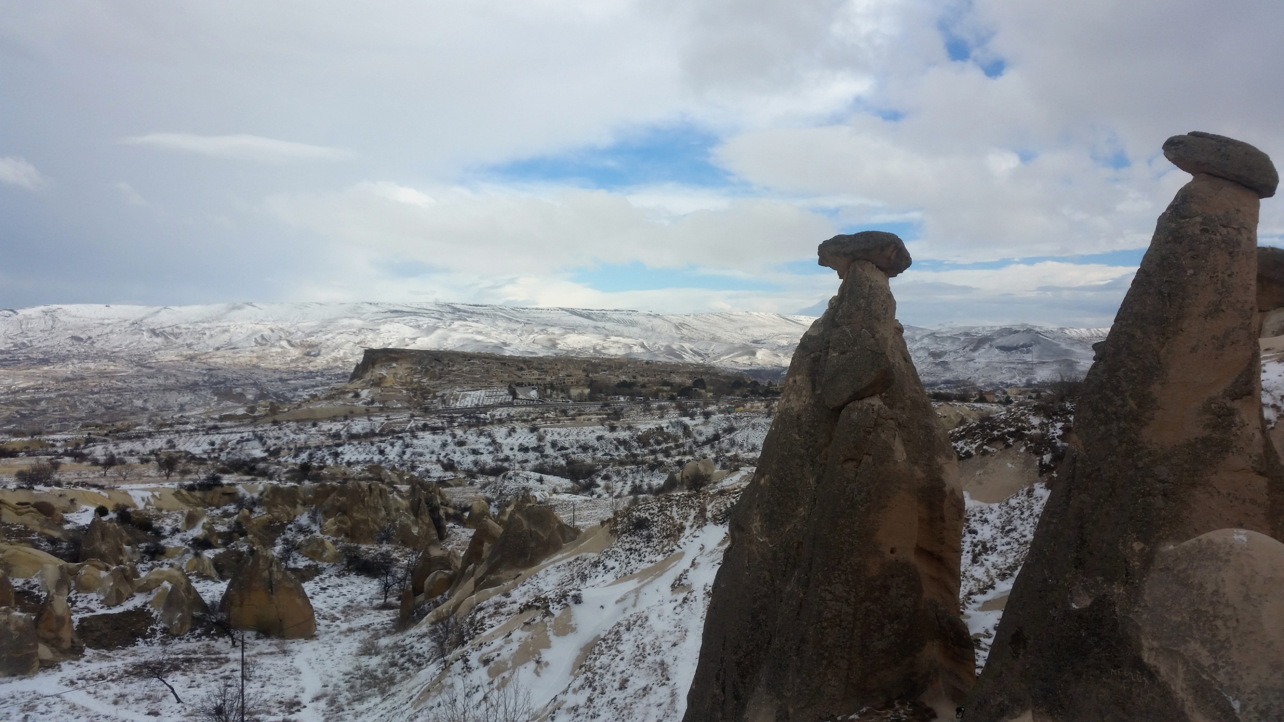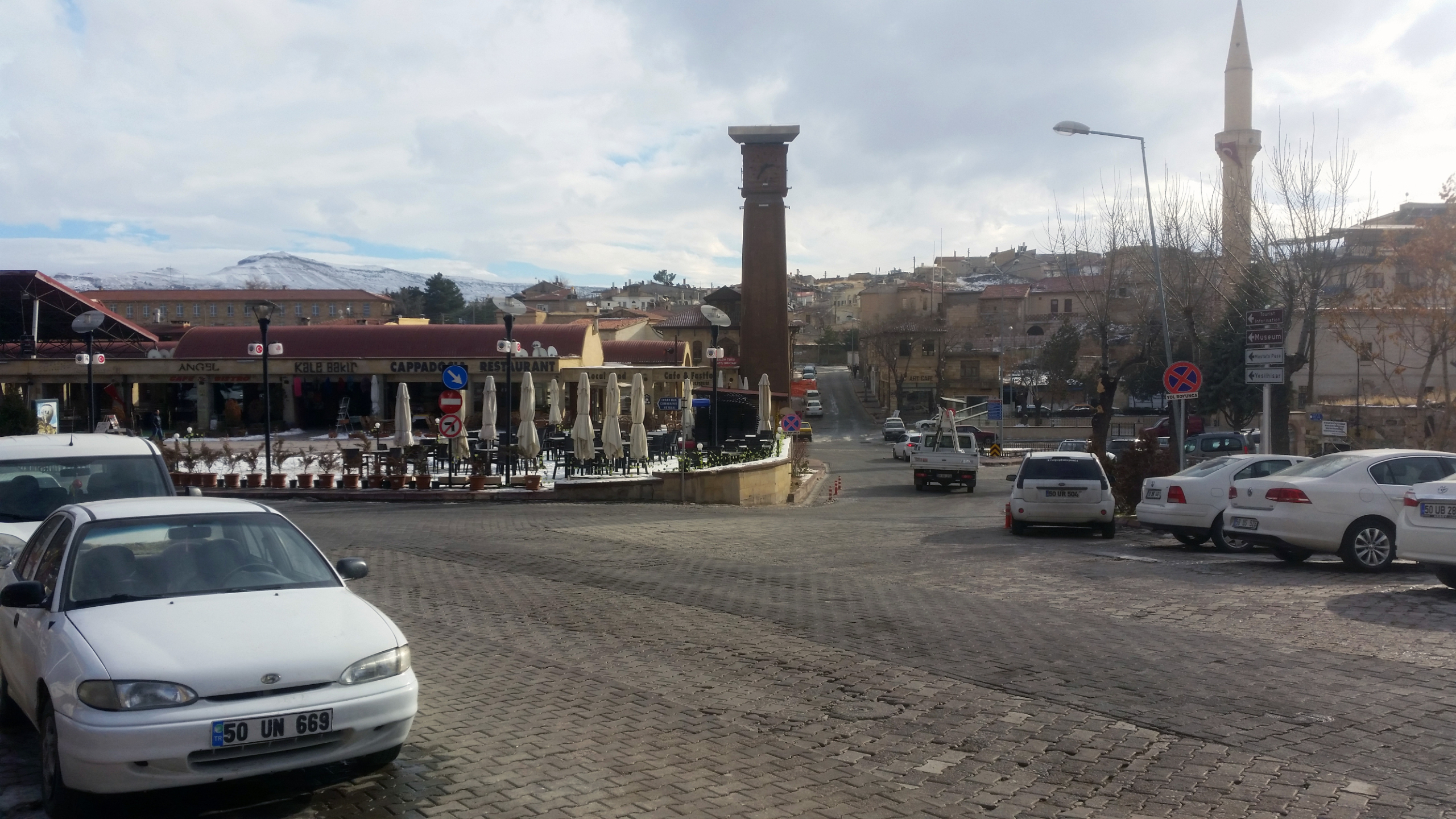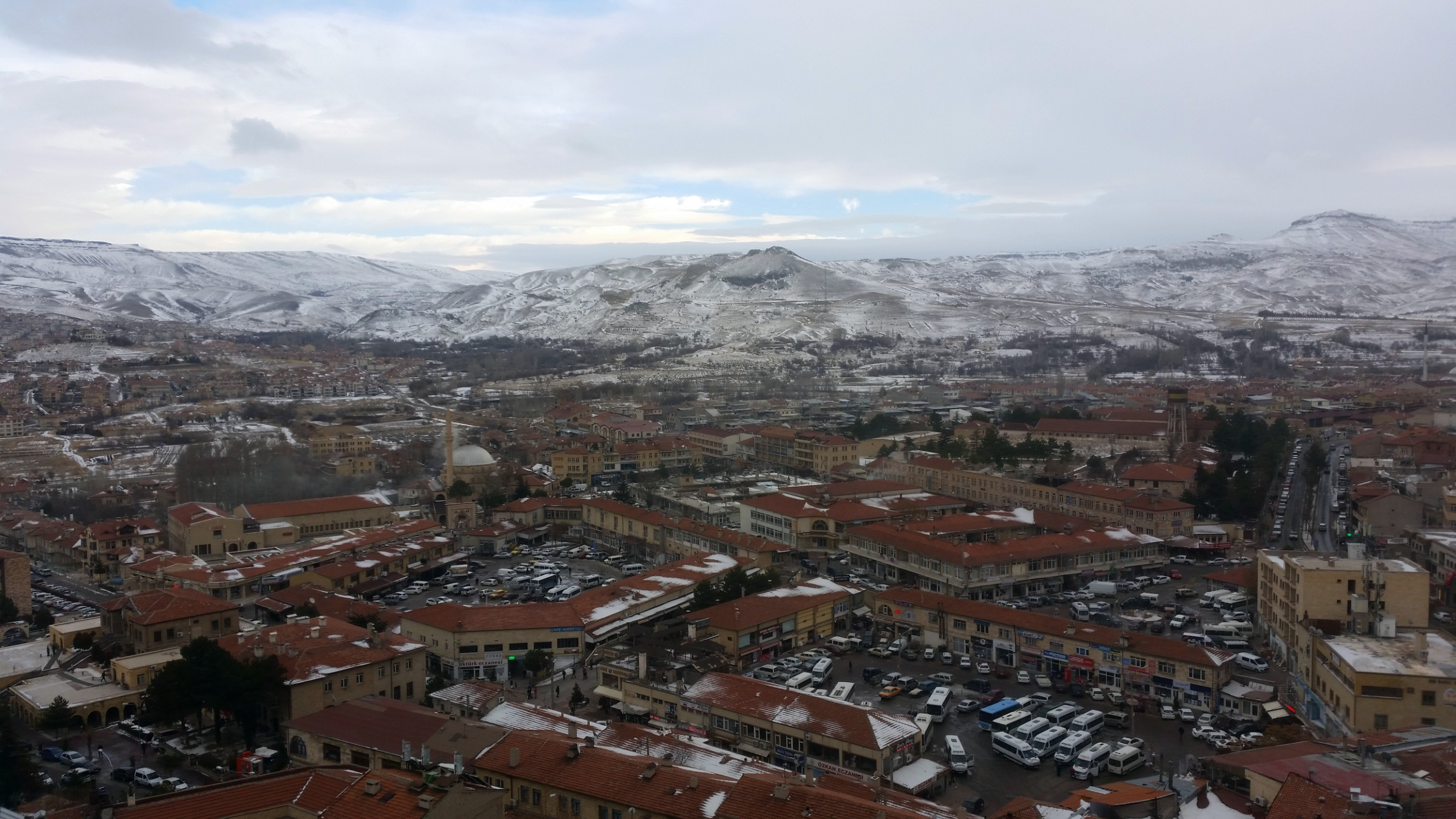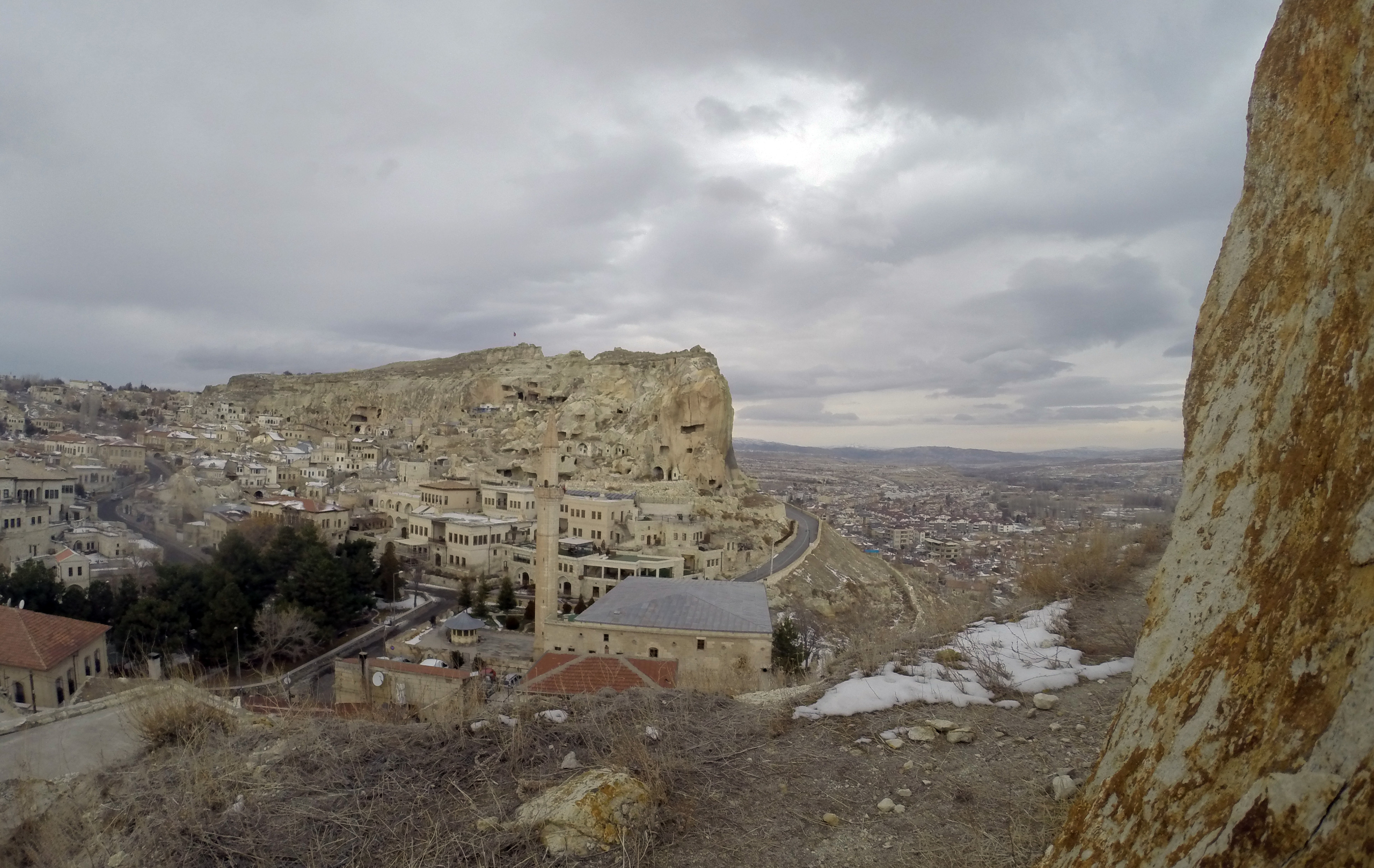 В этот вечер был красивый закат с быстроплывущими облаками и хорошей видимсотью, по крайней мере вулкан Эрджияс был отчетливо виден. Очень хотелось сделать таймлапс этого самого заката, но к сожалению попасть на вершину крепости у нас не получилось, так как открыта она зимой для посещения туристами лишь до 17.00, а мы добрались до нее лишь в начале шестого.