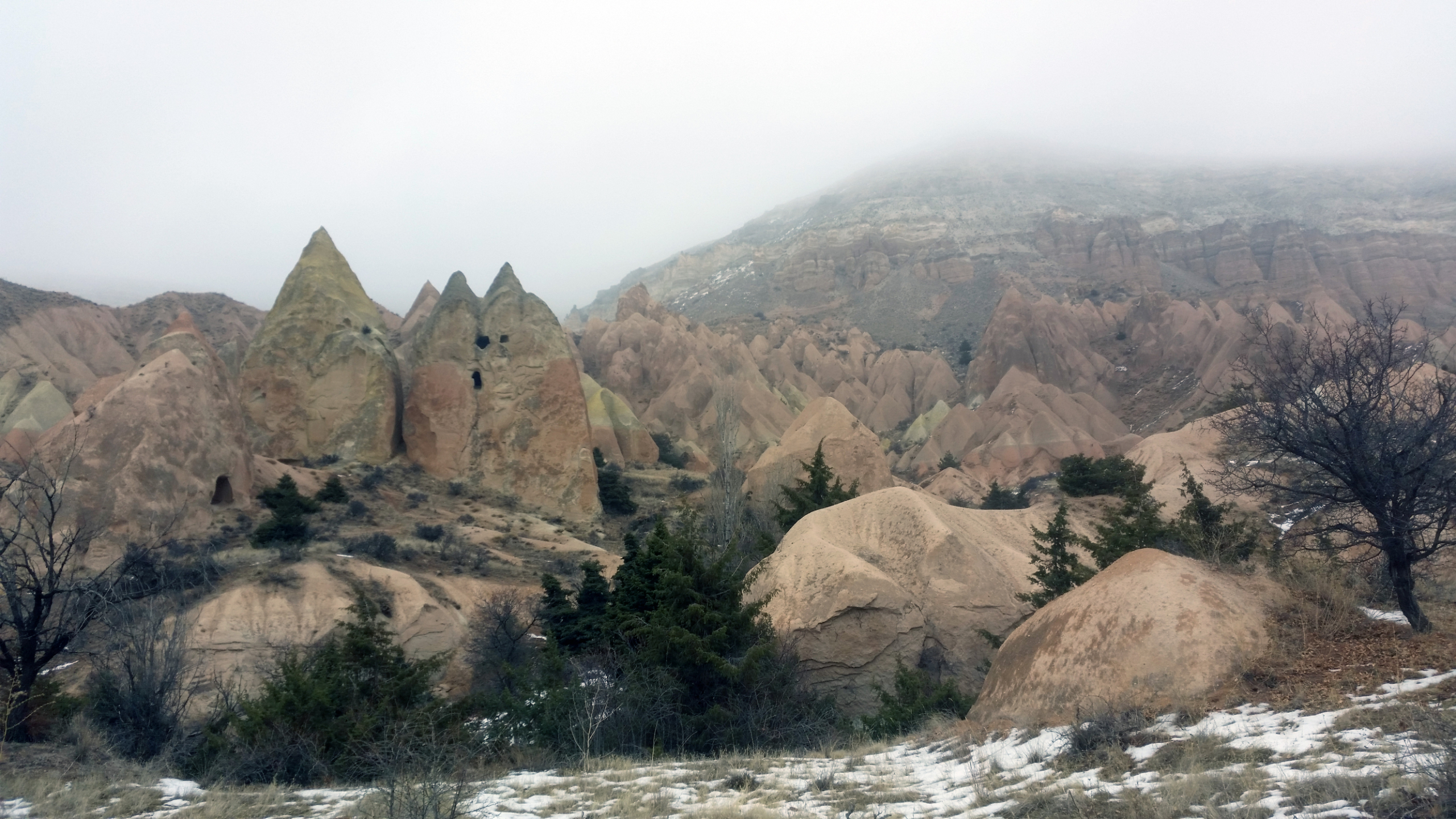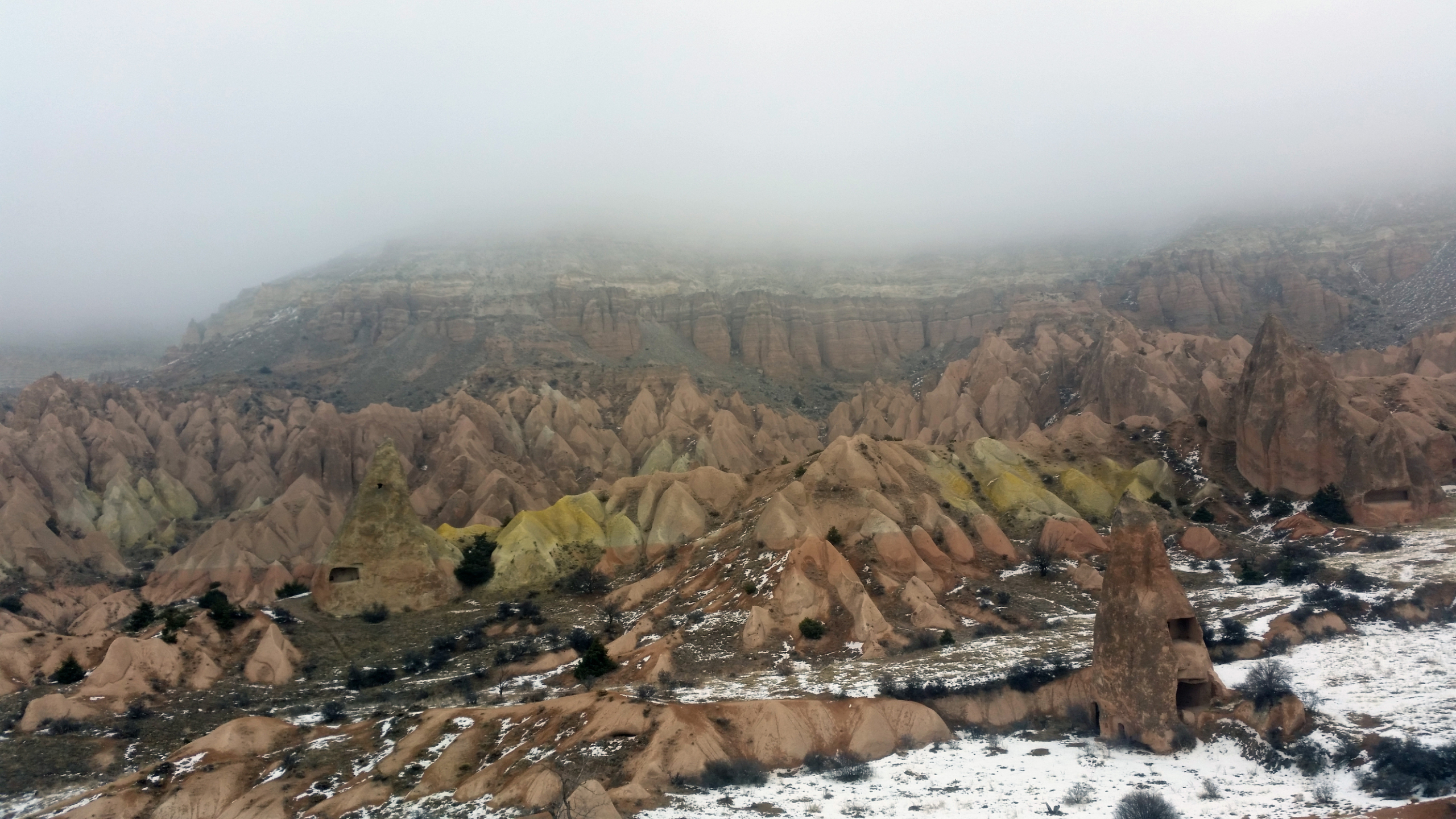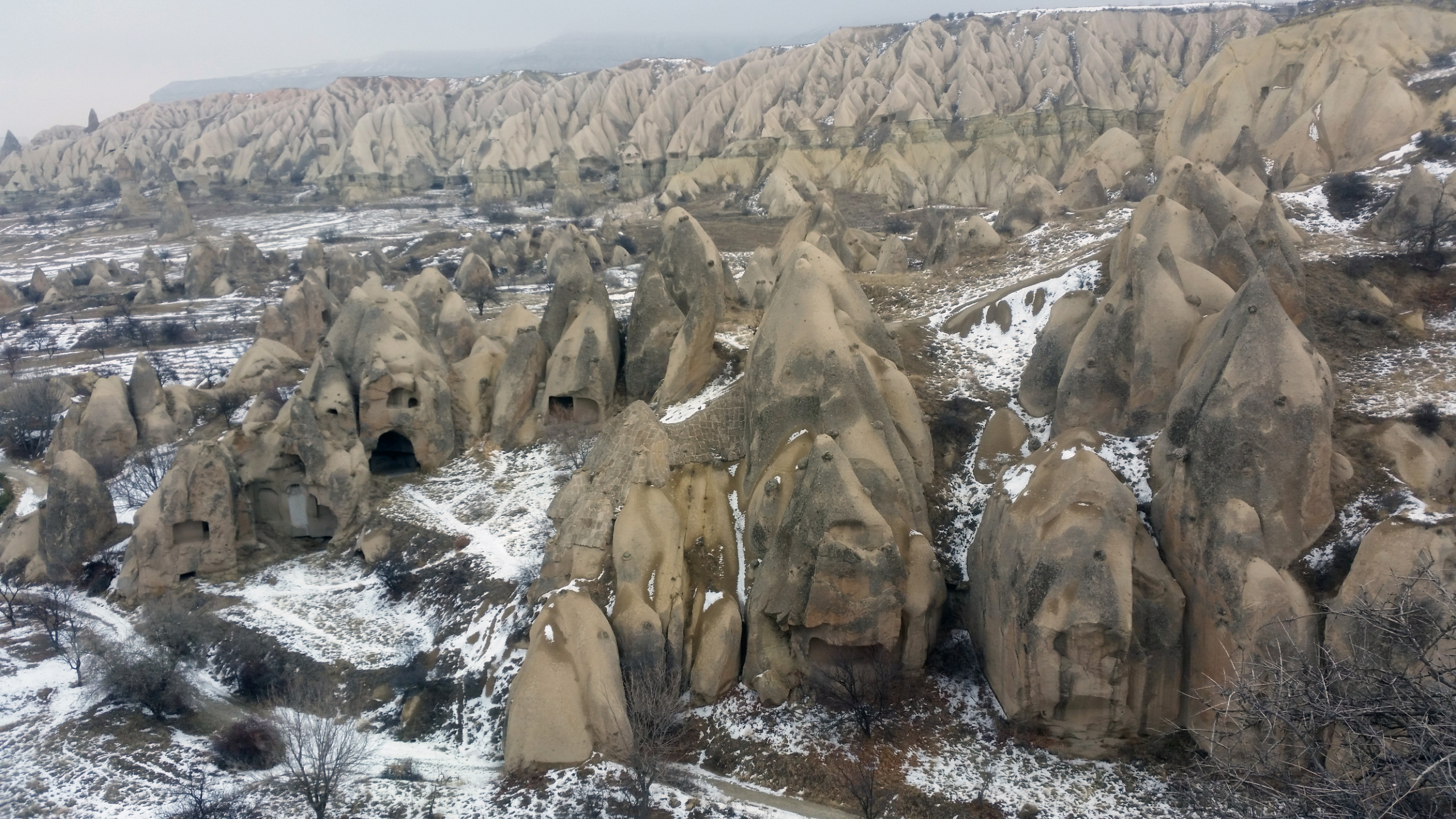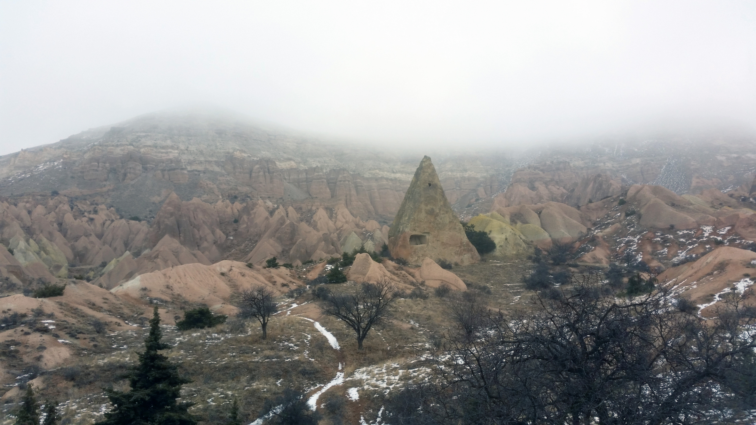 Несмотря на плохую видимость, самые возвышенные точки Каппадокии, такие как Ортахисар и Учхисар, все же можно было разглядеть.