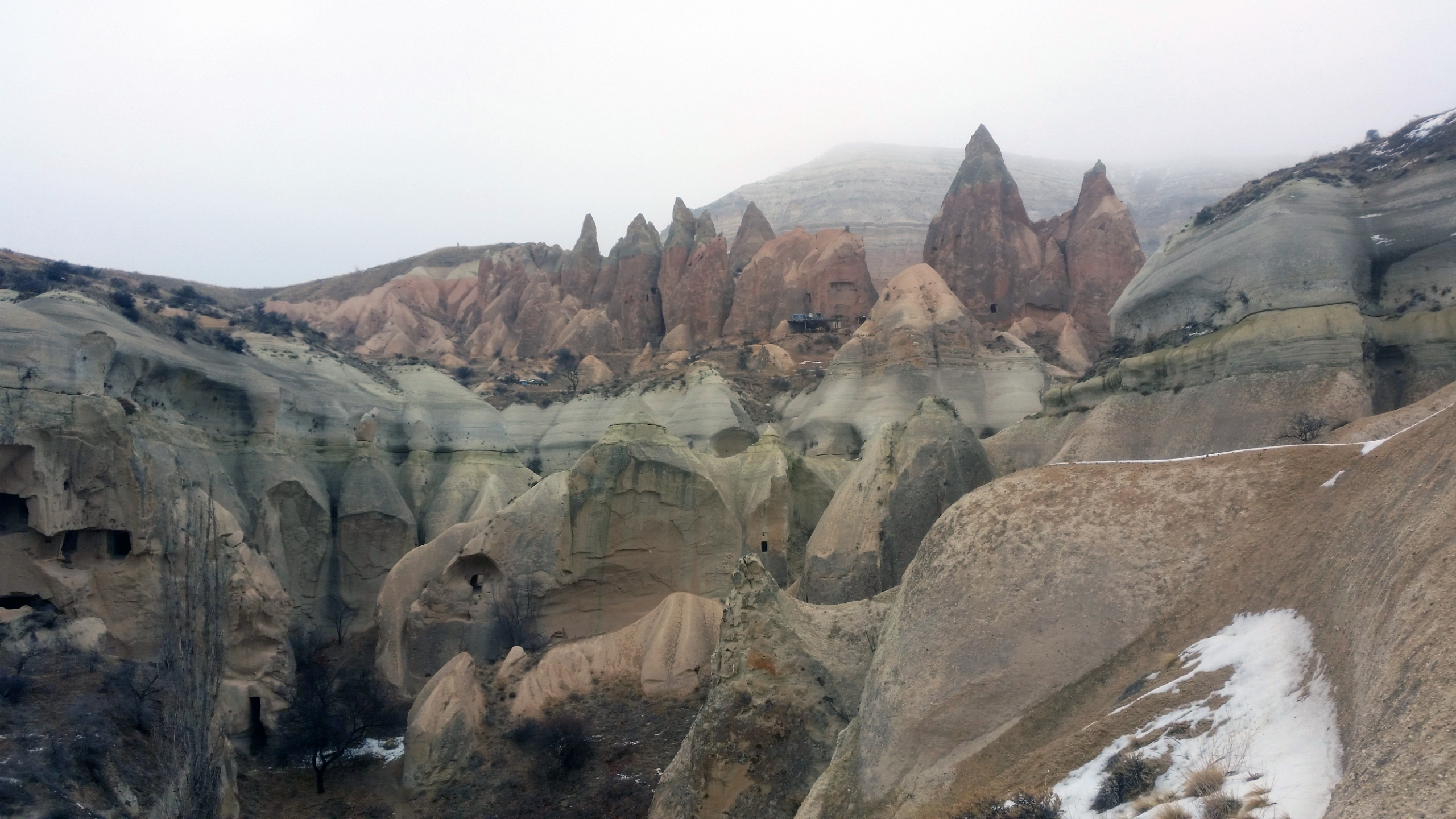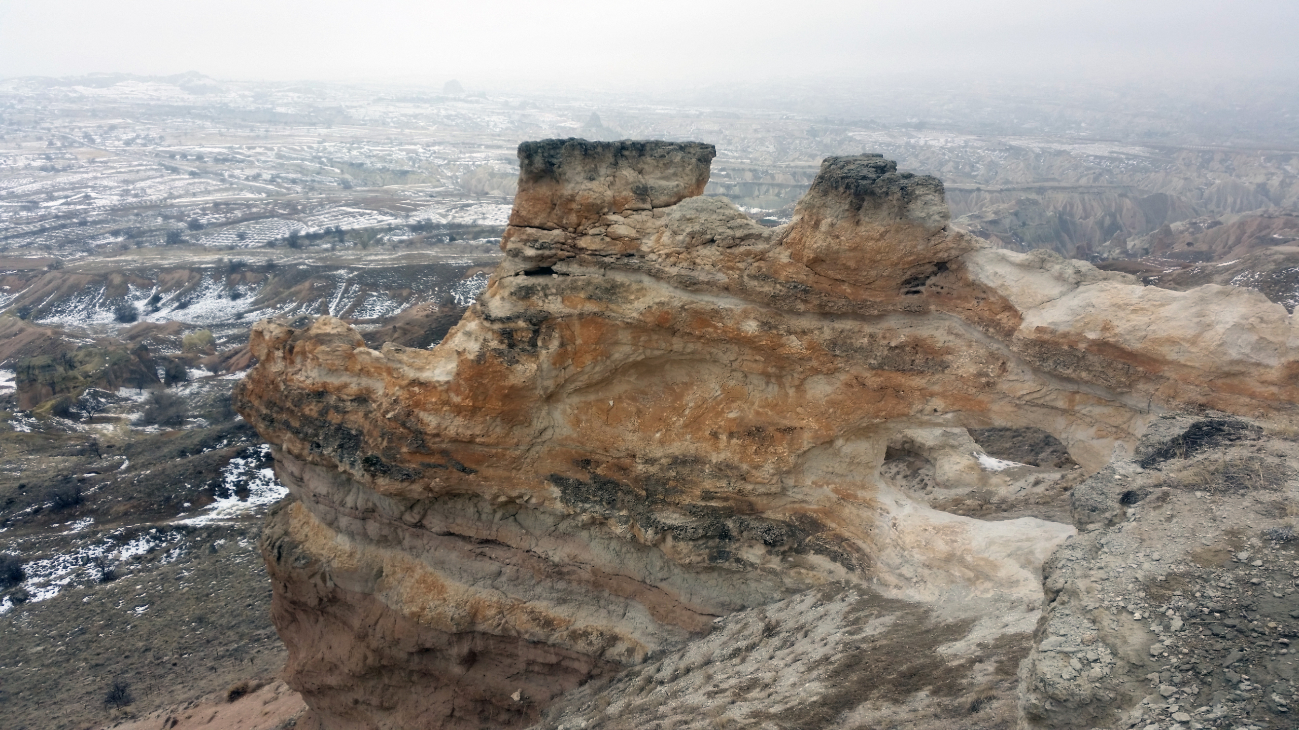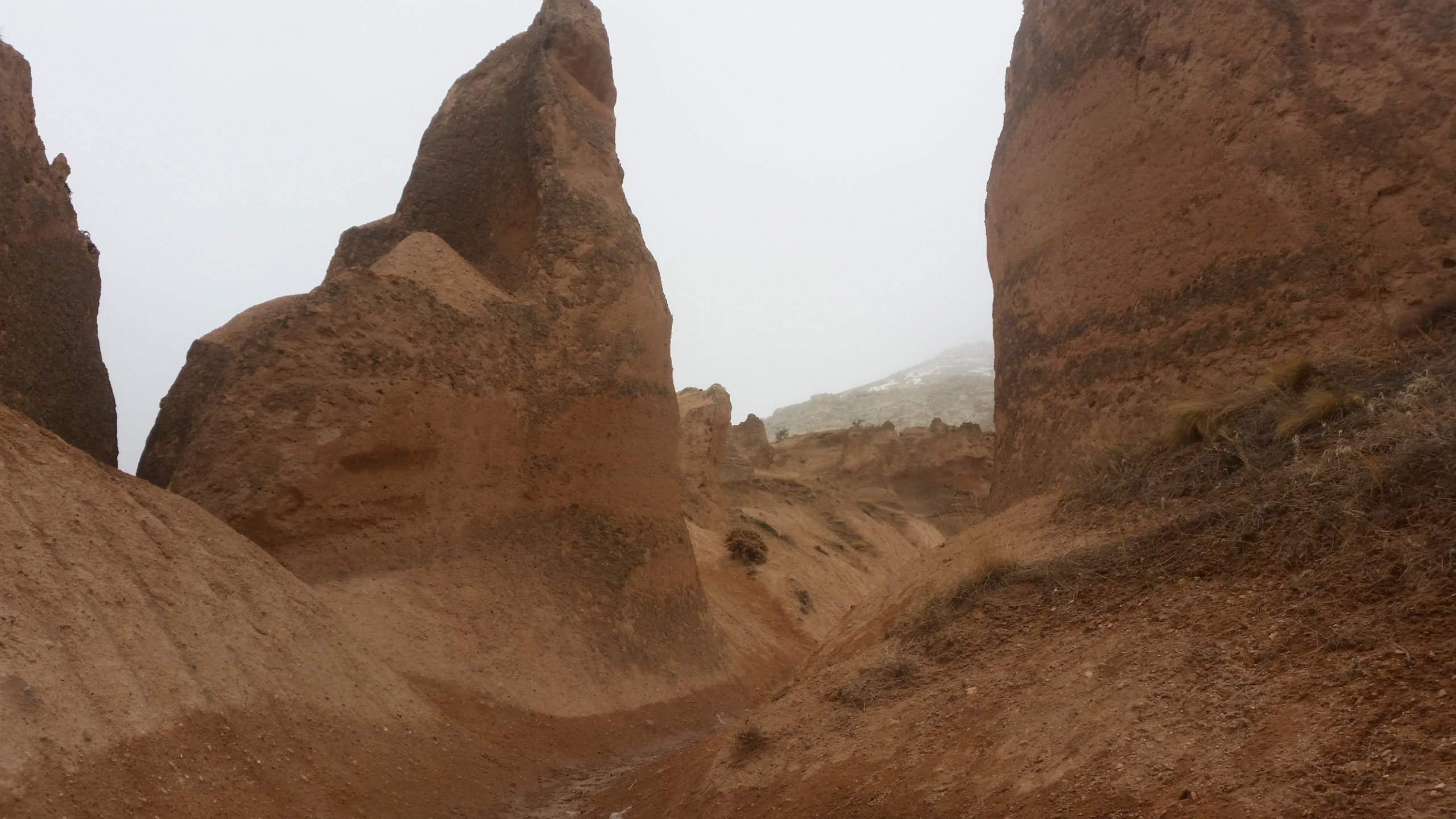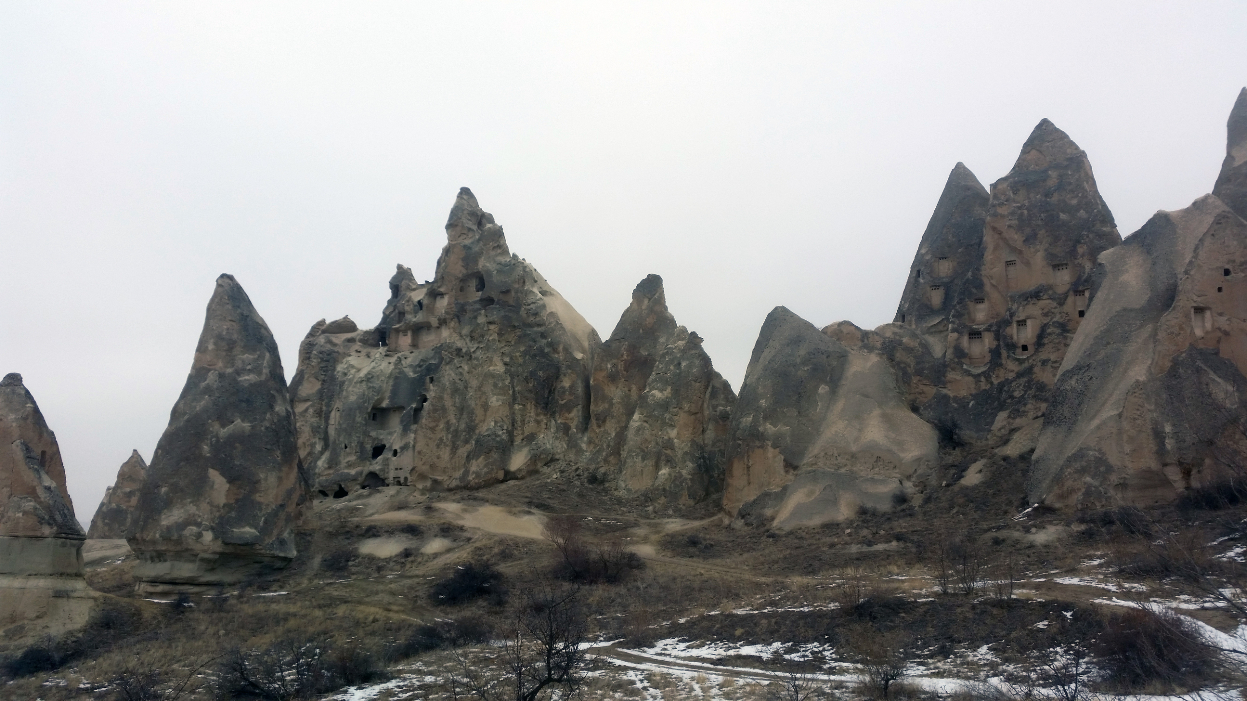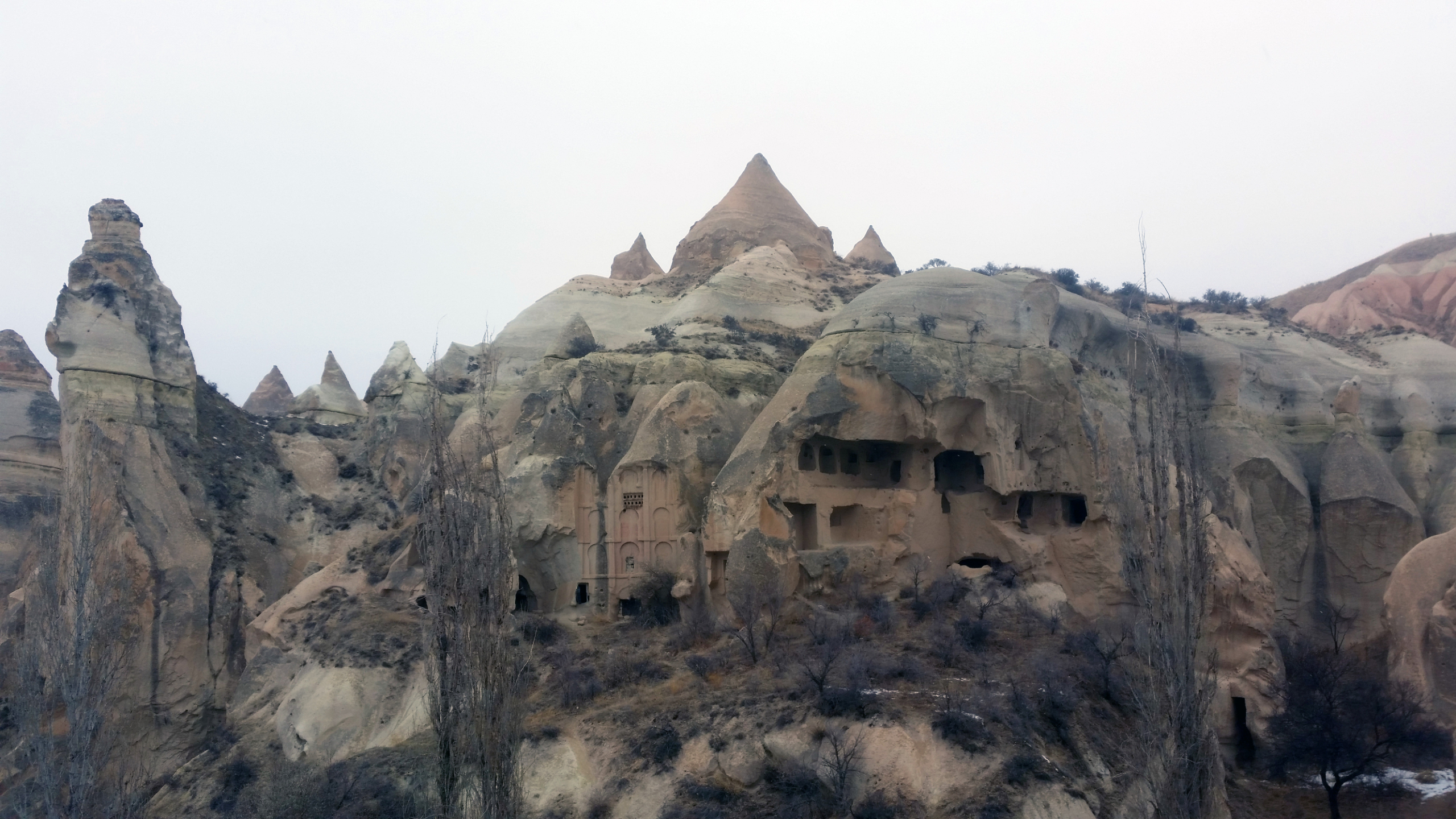 Несмотря на плохую видимость, самые возвышенные точки Каппадокии, такие как Ортахисар и Учхисар, все же можно было разглядеть.
