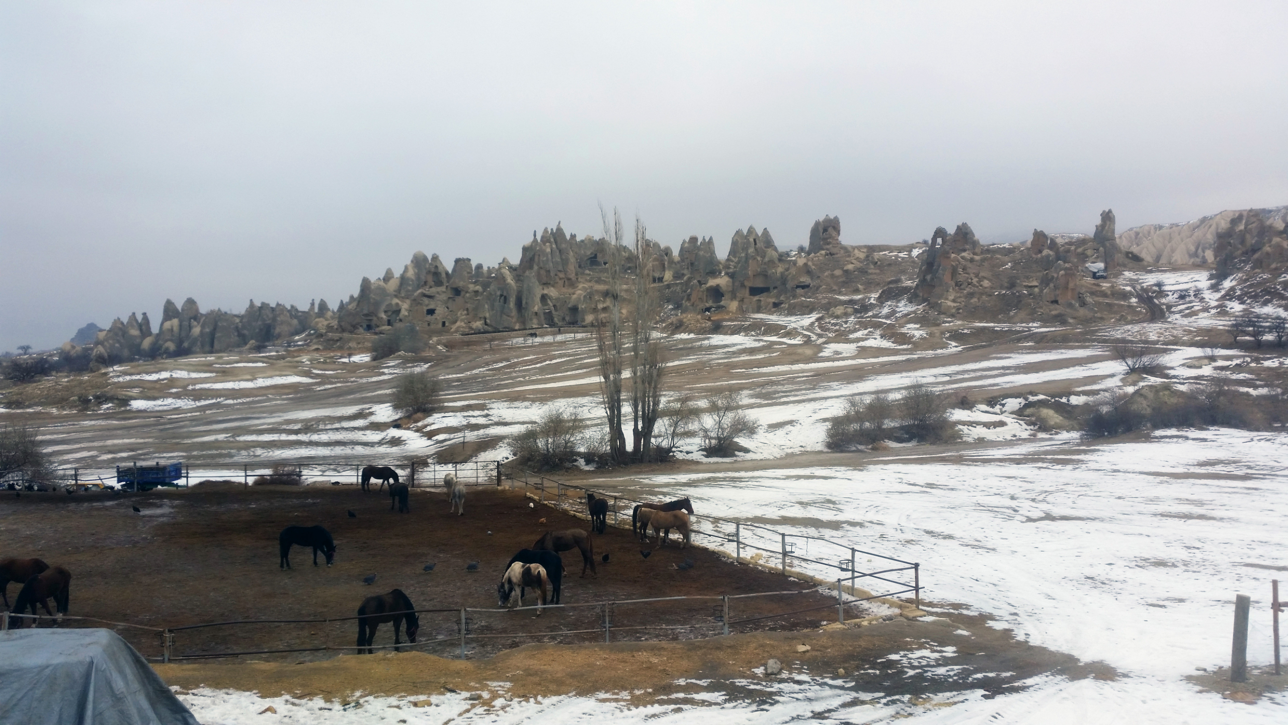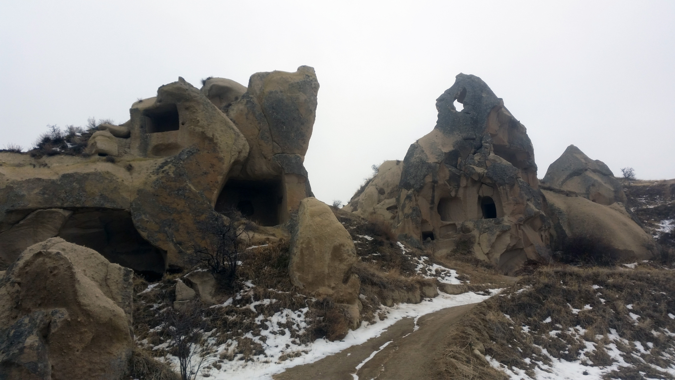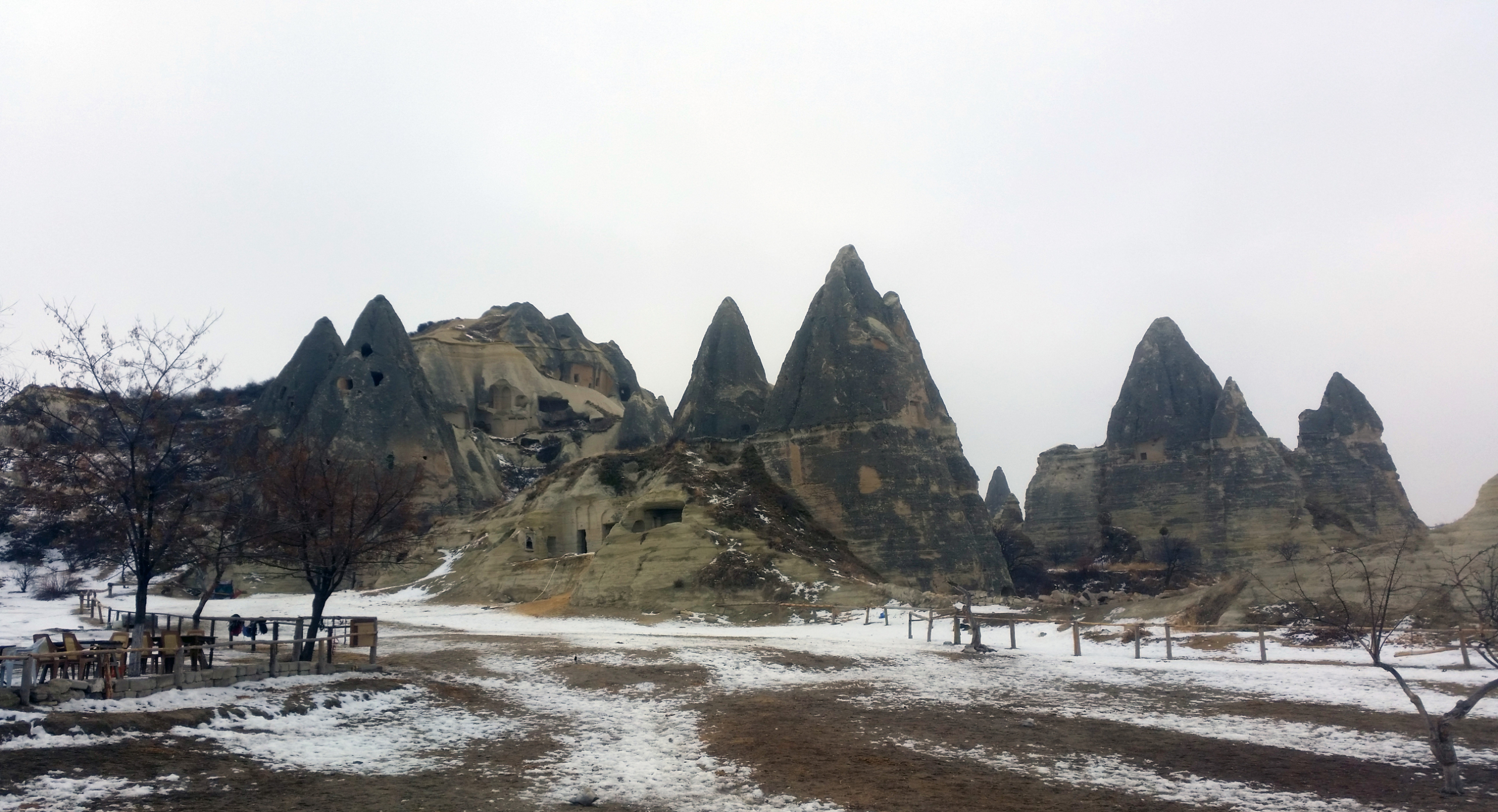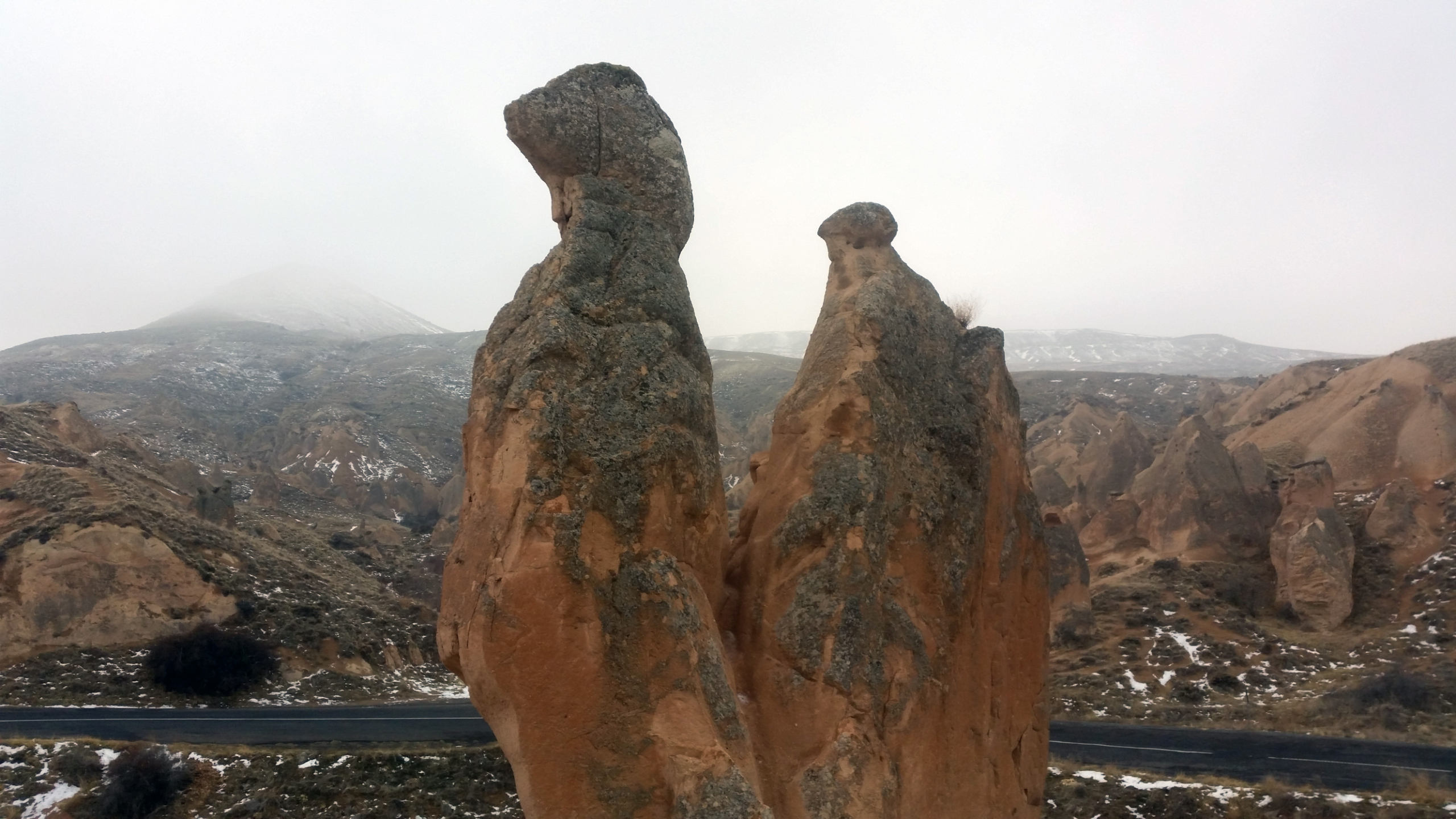 Несмотря на плохую видимость, самые возвышенные точки Каппадокии, такие как Ортахисар и Учхисар, все же можно было разглядеть.